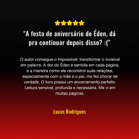 Em um mundo onde as cicatrizes mais profundas são aquelas que ninguém vê, Éden carrega o peso de um nome que promete paraíso, mas entrega tormento. Criado à sombra de um pai que trocou a honra da família por crimes de ganância, ele cresce entre a inocência perdida e a busca por um sentido que sempre lhe escapa. Enfrentando os labirintos da própria alma ao lado de uma serpente interior que sussurra seus maiores medos e dúvidas, Éden luta para escapar, em meio a uma cidade que o só enxerga como filho de um homem preso.